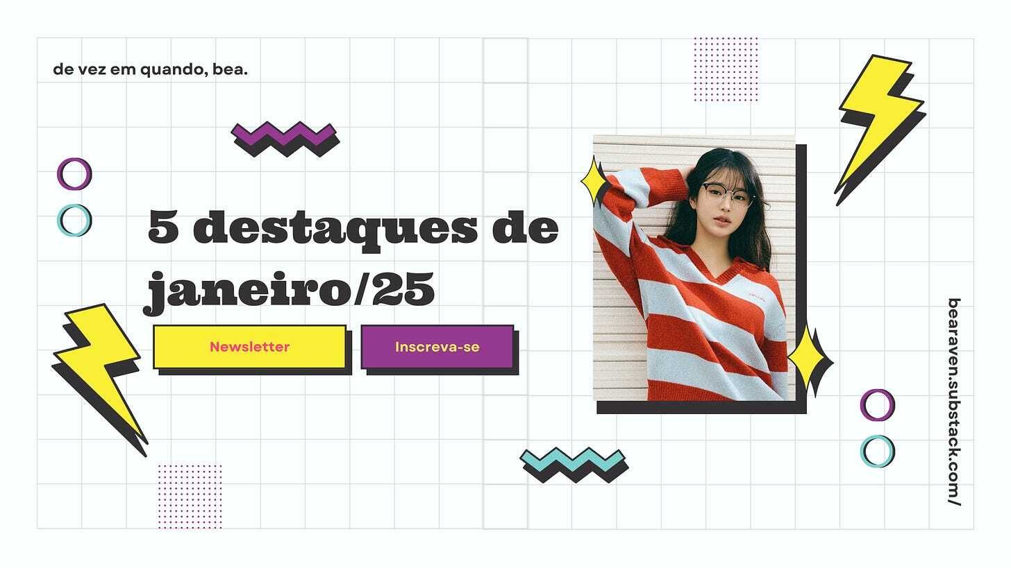 Por isso, agora que estou animada de novo para tocar com essa vida, resolvi dar uma misturada nos dois: vou tentar trazer mensalmente cinco destaques do meu mês anterior (que podem ser basicamente qualquer coisa) e um textinho. Exceto que para janeiro, ainda não vamos ter textinho porque eu acabei de decidir que faria isso, assim, no meio de fevereiro.