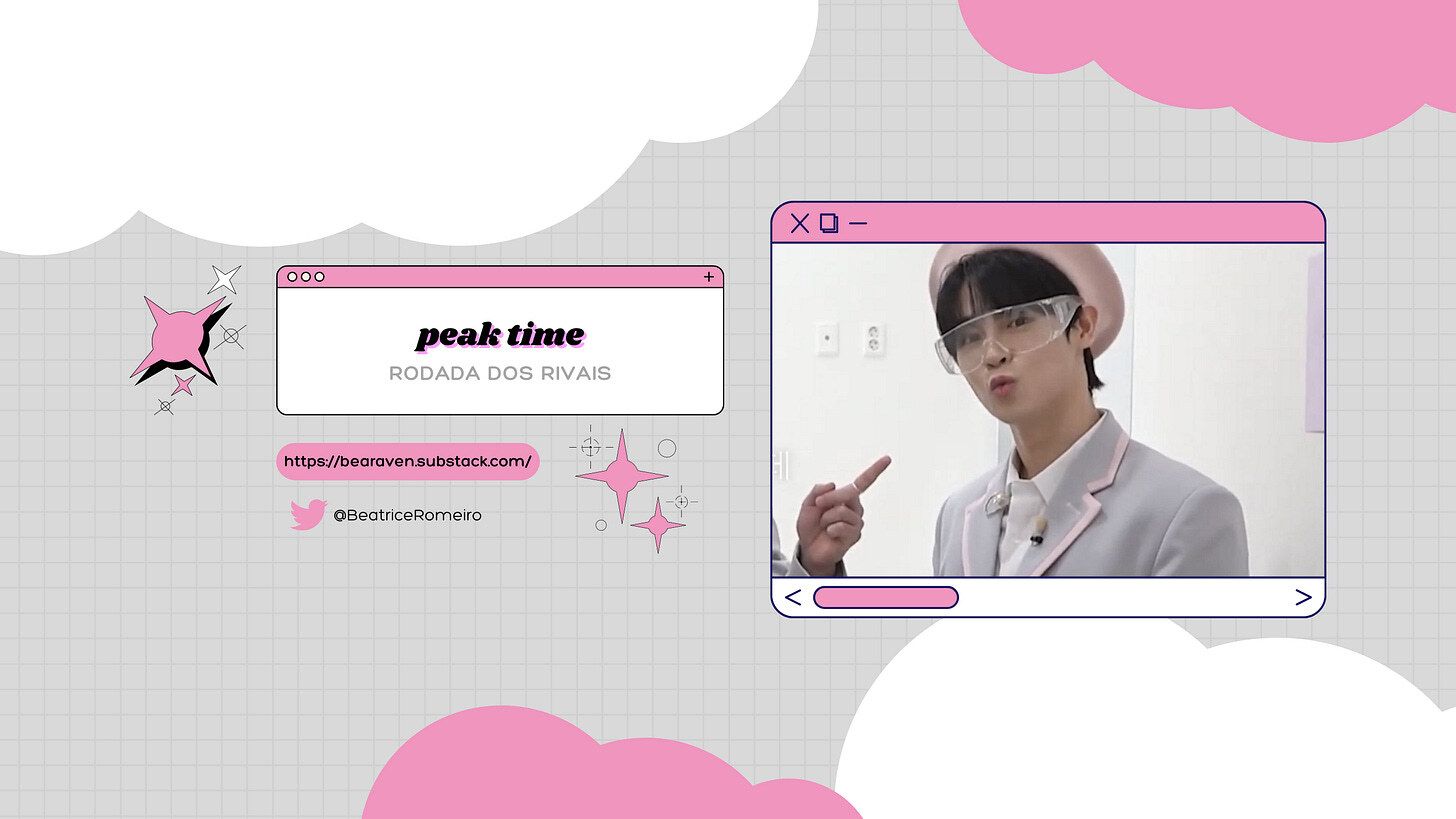 Após a rodada de sobrevivência, os participantes restantes no Peak Time passaram para sua próxima tarefa: a rodada dos rivais. Nela, os jurados parearam os 16 participantes, deram para cada dupla um conceito e duas opções de música. Para definir quem escolheria qual música, foram feitas diversas atividades ridículas, como cabo de guerra, queda de braço e similares. Foi ótimo, tem conteúdo saindo até hoje.